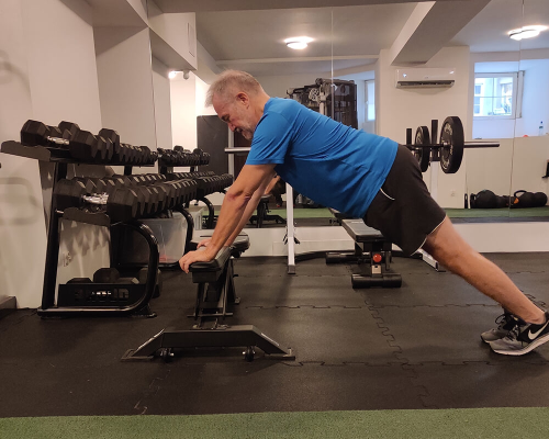 Przykładem jest Pan Zdzisław który pomimo wielopoziomowej dyskopatii lędźwiowej, deformacji scheuermanna w odcinku piersiowym oraz chorzenie układu kostno-mięśniowego. Wykonuje trening siłowy odpowiednio ukierunkowany do jego potrzeb. Zaczęliśmy powoli od ćwiczeń oddechowych, ćwiczeń wspomagających mięsnie kręgosłupa. Aby ustabilizować sylwetkę, nauczyć się pracy nad własnym ciałem. Z treningu na trening zdobywaliśmy pewność wykonywania ćwiczeń siłowych. W których klient czuł się komfortowo i bezpiecznie. Każdy trening zaczynamy od ćwiczeń mięśni brzucha oraz grzbietu, aby je łatwej zaangażować w dalszym etapie treningu.